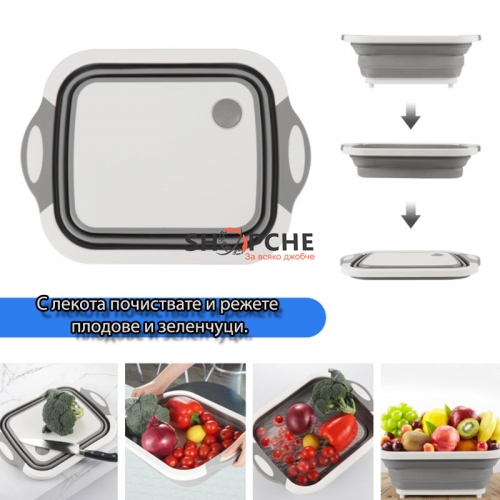 Представяме Ви практичната сгъваема силиконова купа с вградена дъска!