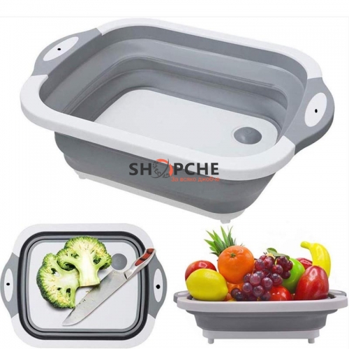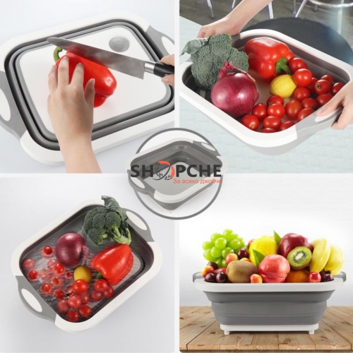 Тази практична многофунционална купа с дъска ще ви бъде от голяма полза за съхранението, измиването и нарязването на плодове и зеленчуци.