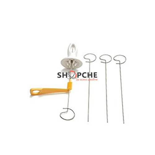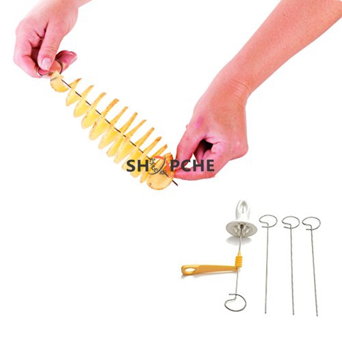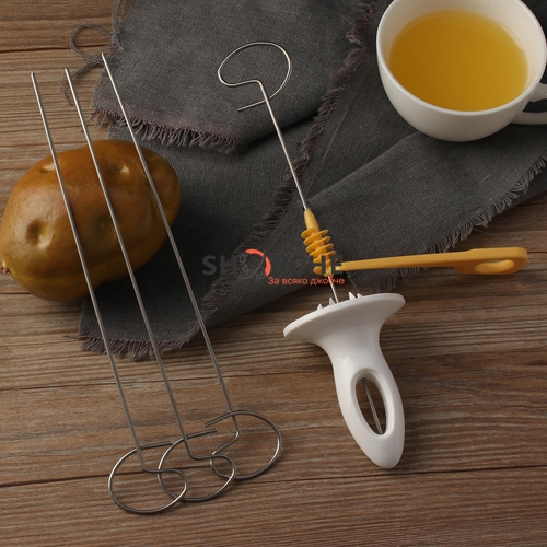Комплектът включва 4 шиша от неръждаема стомана за пържене или печене на картофени спирали!