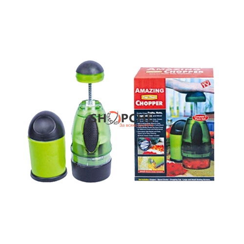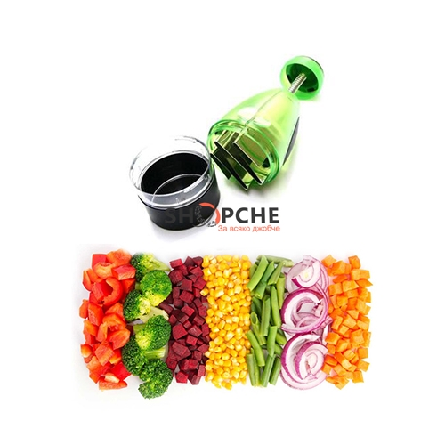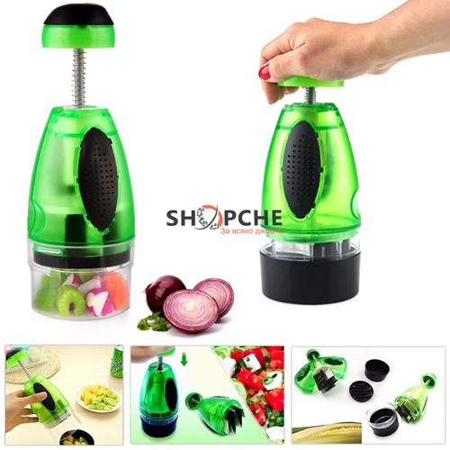 Чопърът реже с лекота зеленчуци, ядки, плодове, сирене, подправки, шоколад и други. С всеки натиск храната става все по-фина, а работата с него е бърза и лесна.