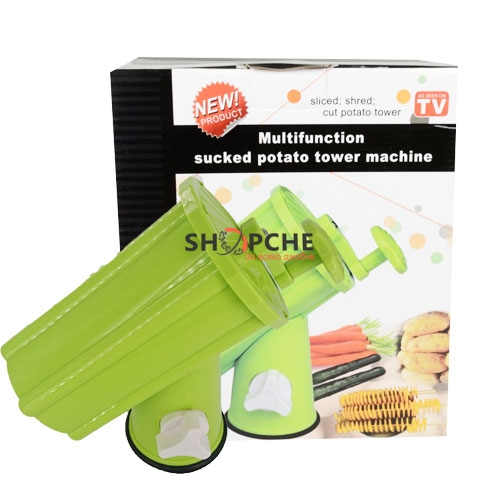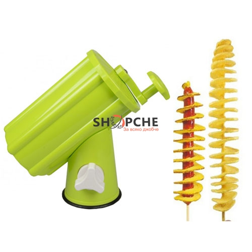 Машина за картоф на спирала - Лазерно заточените ножове позволяват обработката на един картоф – нарязване и нанизване на дървено шишче да става бързо, а получената атрактивна форма ще впечатли Вашите приятели и клиенти.