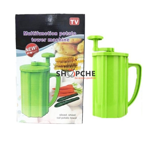 А ако ви предложим да е една идея по-здравословен и поднесен по оригинален начин. Multifuncion potato tower machine ще Ви помага с лекота да превърнете цял картоф в спираловиден чипс, който стои на клечка.