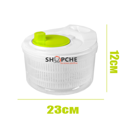 Центрофугата е подходяща за изцеждане на маруля, зеле и други зеленчуци, а долната й прозрачна част може да използвате и като купа за салата.