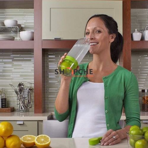 С тази практична бутилка можете да изцедите любимият си фреш от цитруси и да го консумирате веднага.