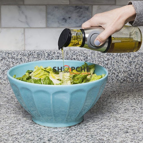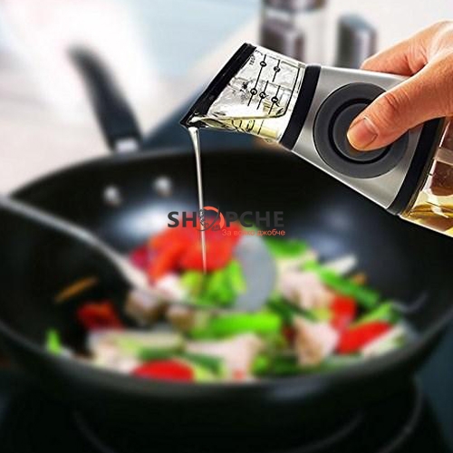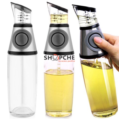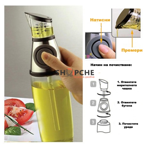 Иновативният дизайн на диспенсъра разполага с бутони отстрани, за да изпомпате необходимото количество мазнина или оцет.