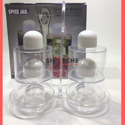 4бр. Контейнери-2 от тях са с накрайник за течности (оли/оцет) и 2 са с малки отвори( сол, пипер и др.).