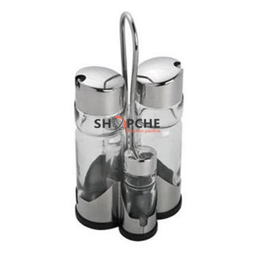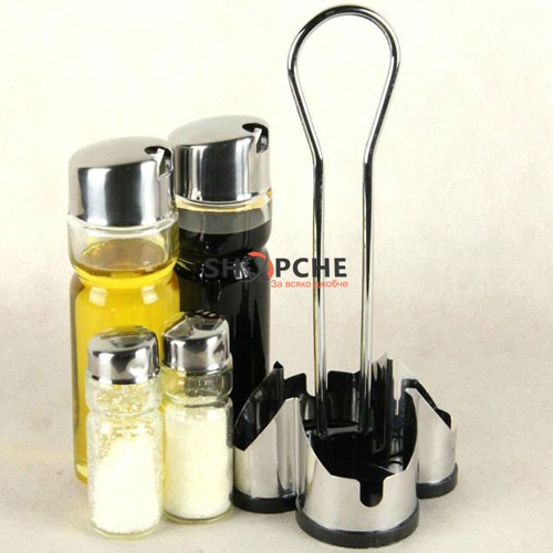 Класически комплект за сервиране на олио, оцет, сол и пипер.
