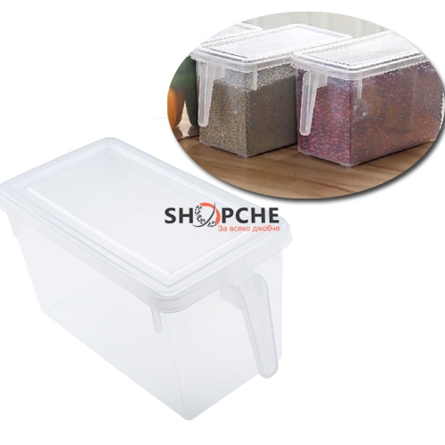 Страхотен контейнер с дръжка и капак, в който можете да поставите продукти като ориз, боб, леща, кафе, захар, сол и други.