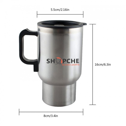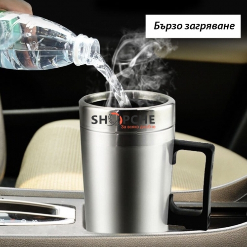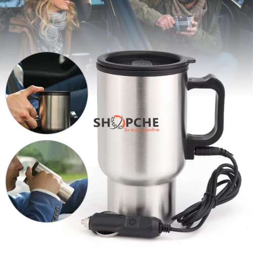 Тази термо чаша за кола е с нагревател за продължително поддържане на топлината на напитки - чай, кафе и др.