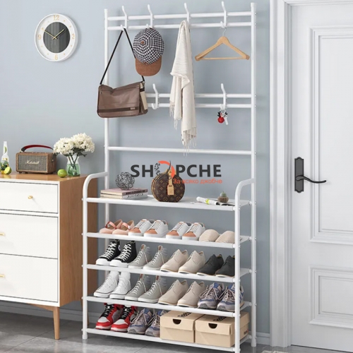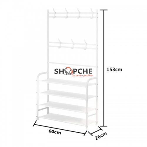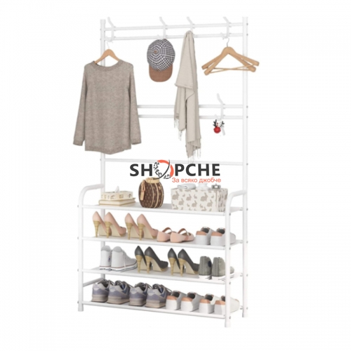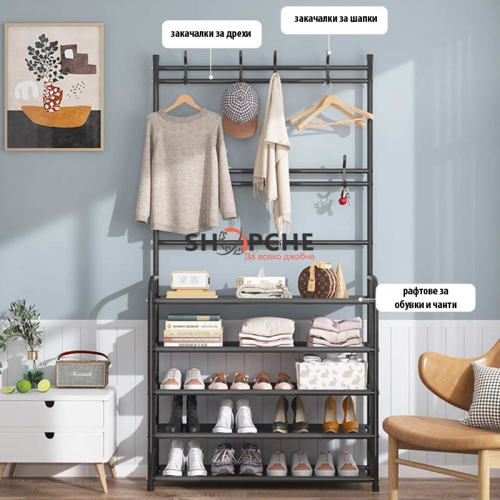 Мултифункционална етажерка, която може да се използва като стойка за обувки, закачалка за дрехи, шапки, обувки, чанти, чадъри и други.