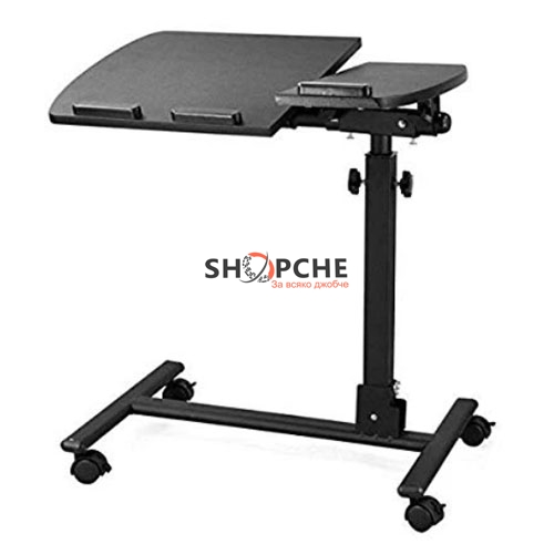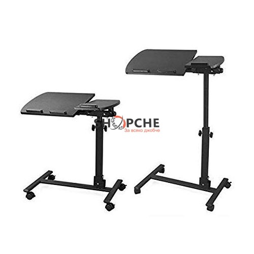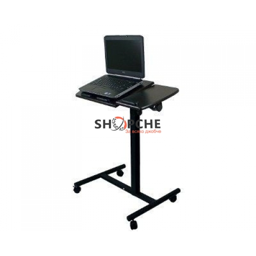 Продуктът е изработрн от метал и МДФ плоскост и е стабилна и здрава, компактните и размери ще позволят да я позиционирате навсякъде в дома си, а колелцата и създават удобство и лекота за да я придвижвате из дома си без да е необходимо да я вдигате. Мобилната маса е с допълнителен малък плот за поставяне на мишката и можете да регулирате наклона и височината на плота за по-голямо удобство.