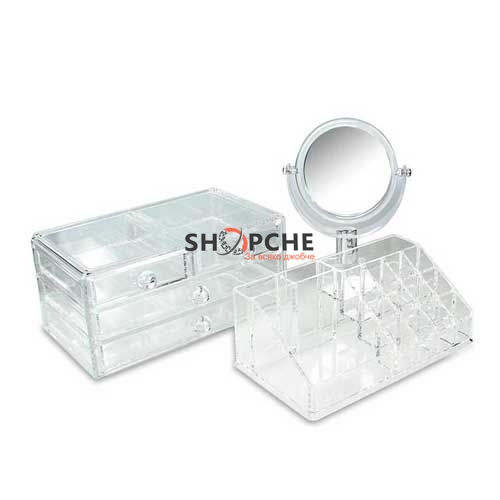В горната част можете да подредите любимите си червила, моливи и четки, а в долната част – бижута и аксесоари в три отделни чекмеджета.