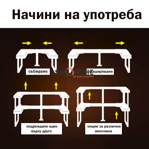 Той има регулируема височина и широчина - разширява се или се свива, за да се побере в шкаф с всякакви размери.