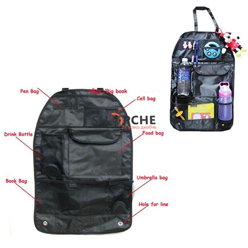 Органайзерът за кола се поставя на гърба на седалката на шофьора или на пътника до него;