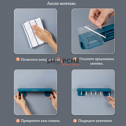 Закрепя се лесно за стената със стойка с двойно лепяща лепенка, без да са Ви необходими допълнителни инструленти!