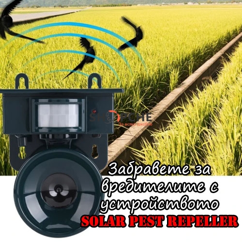 Solar Pest Repeller е с водоустойчив дизайн и соларен панел.