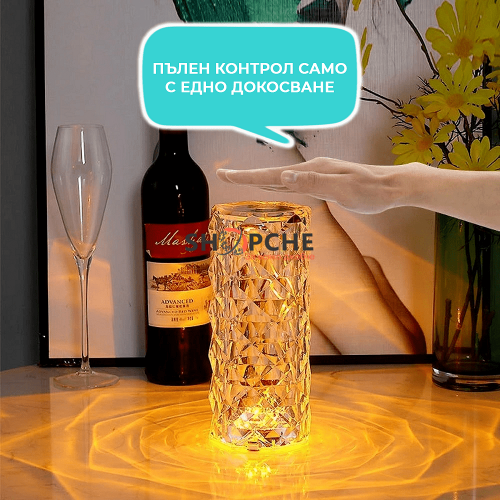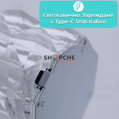 Тази кристална лампа е направена от акрил с вид на бели кристали, фокусирани към балансираната класическа красота. При модерната кристална лампа е обрнато внимание на визуалното въздействие и динамиката на формата, които създават очертания, без да подчертават структурната симетрия. Тя е подходяща както за нощна лампа, така и за украса и декорация на маси, секции и др.