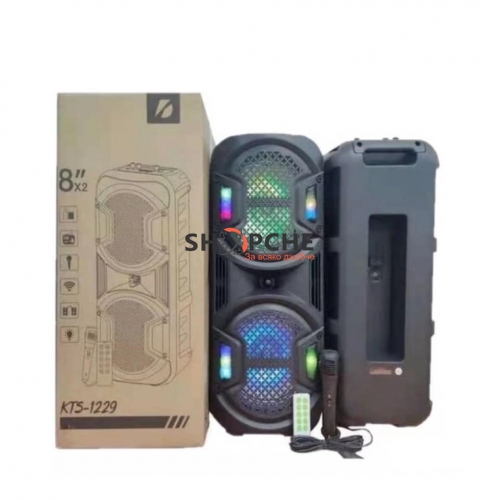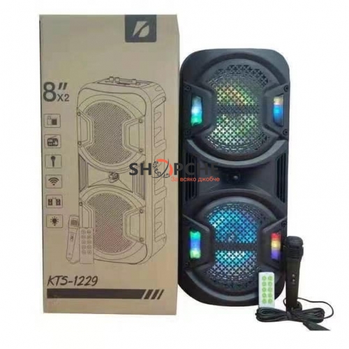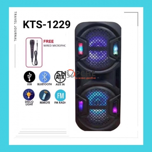 Bluetooth Wireless колона за караоке с презареждаща се батерия. Включен микрофон в комплекта. Bluetooth и Wireless свързаност, FM радио и дистанционно управление. AUX порт и опция за поставяне на TF карта.