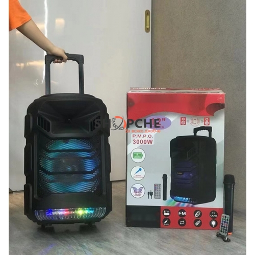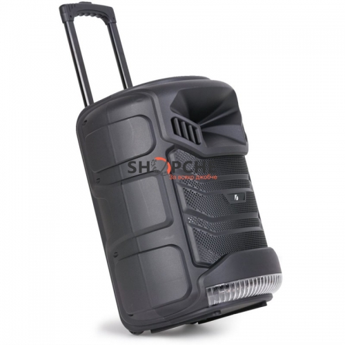 Колоната е супер удобна и за използване, там където няма електричество, тъй като е с вграден мощен акумулатор с капацитет от 1800mAh. Зарежда се с USB кабел, който е със стандартен жак и можете да я захранвате дори по време на готовност. Тонколоната има красиви цветни светлини, които се пускат когато тя свири. Можете да слушате музика по различни начини, благодарение на множеството опции за произвеждане които предлага. Тонколоната има безжична функция, чрез Bluetooth, която е с активна до 10 метра разстояние. Също така има слот за TF/SD карта, USB порт за флашка и вход за AUX кабел. Тя пристига с микрофон, който можете да го включите с кабела към нея или чрез безжична връзка, чрез настройките които са възпроизведени в него и тонколоната. Дистанционното управление, пък ви позволя да я контролирате от разстояние. Тонколоната е портативна и можете много лесно да я пренасяте, като за тази цел тя има подвижни колелца и удобна разтеглива дръжка.