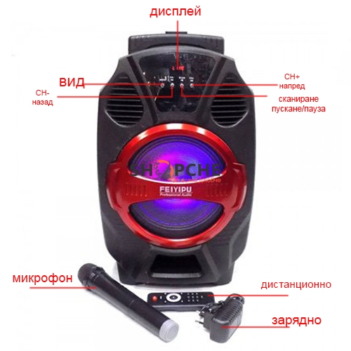 Преносима акумулаторна караоке тонколона FEYIPU - R8. с Bluetooth