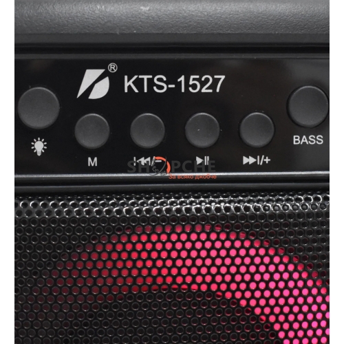 3-инчов х 2 високоговорител с LED светлина при възпроизвеждане на музика, свързва се през bluetooth, USB, micro SD, Aux 3.5 mm. и идеален за караоке, което има вход за микрофон. Има обхват от около 10 метра. Батерията му е акумулаторна и издържа 4 непрекъснати часа, включва кабел за зареждане.
