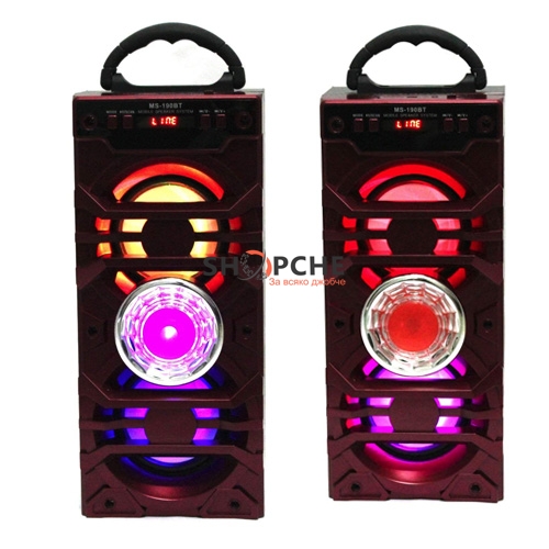 Представяме Ви Преносима Bluetooth колонка с два говорителя и цветомузика MS-190BT