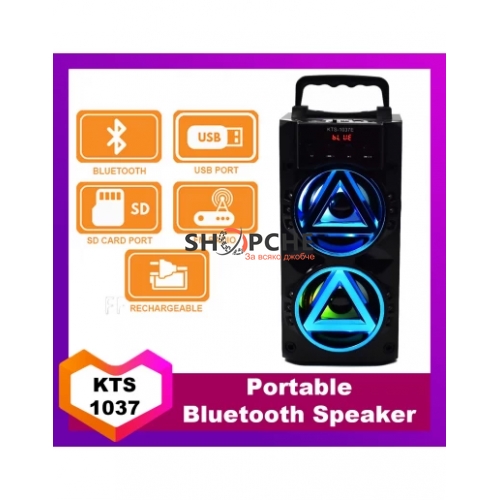 Преносима Bluetooth тонколoна подходяща за караоке с цветомузика и подарък микрофон, идеална за празненства. Тонколоната е изключително подходяща за места където няма електричество, тъй като е с вградена акумулаторна батерия. Препоръчително е да се зареди и след което да се използва на батерия.