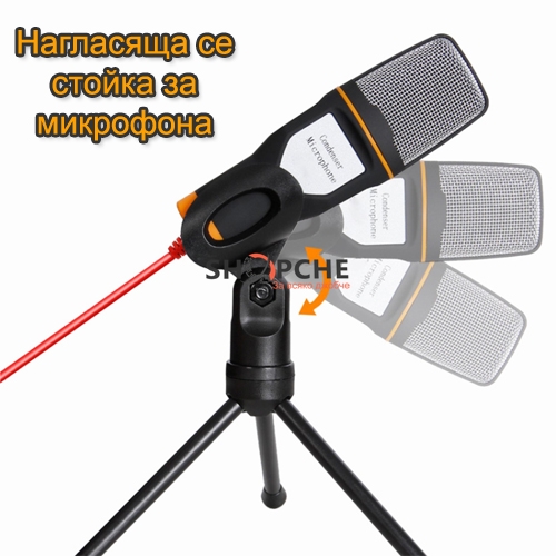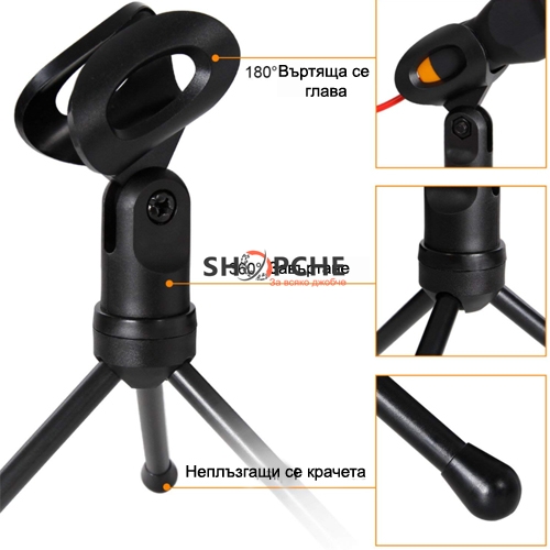Кондензаторен микрофон със настолен статив, подходящ за чат, стимийнг, Live разговори, записи и други.