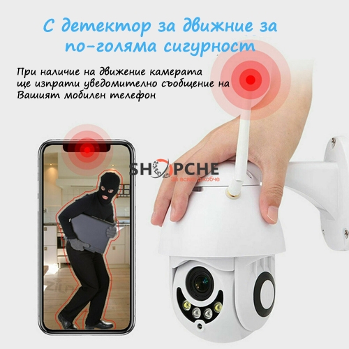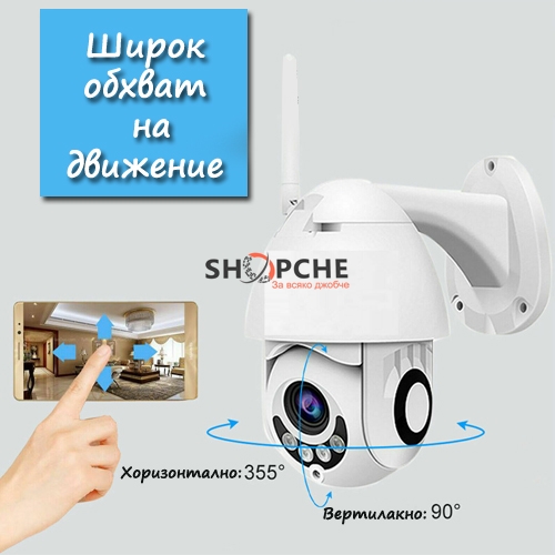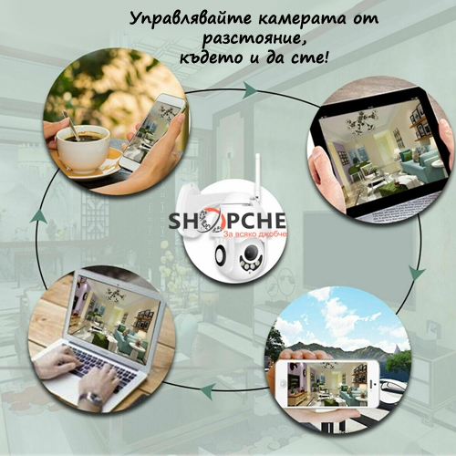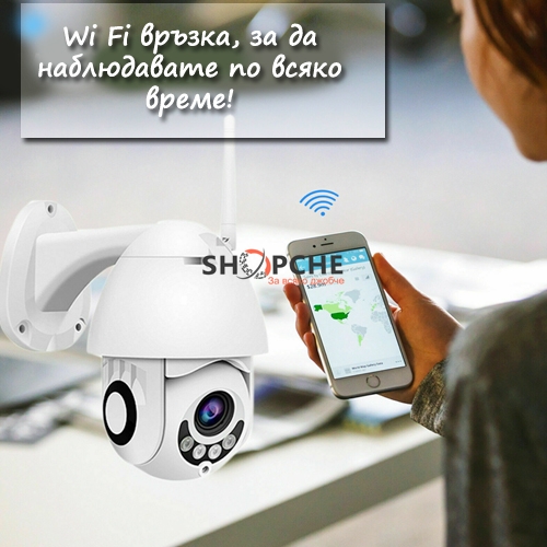 Безжична Wi-Fi IP камера за видеонаблюдение съвместима с всяко smart устройство (мобилни телефони, таблети или персонални компютри) чрез Wi Fi интеграция.
