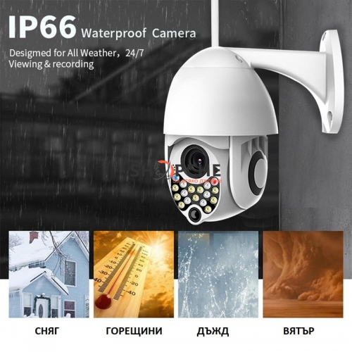Wifi камерата Wateproof 17 LED е водоустойчива и е подходяща за външни условия, може да се настрой и монтира за няколко минути, без необходимост от допълнителни устройства или кабели. Защитата за водоустойчивост е IP66.