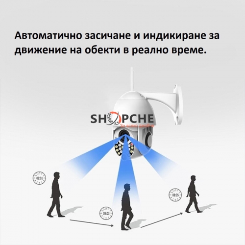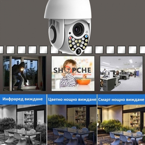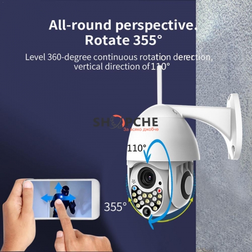 Wateproof 360 е моторизирана и се завърта във всички посоки. 17 led СЕНЗОРА позволяват отдалечена нощна видимост до 30м. Използва приложение YCC365, което може да свалите безплатно от Android или Apple store.