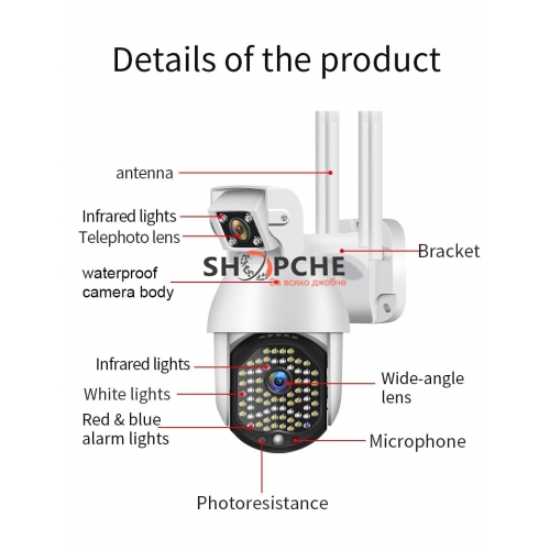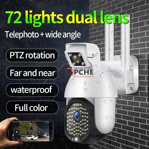 Най-Мощната Външна Водоустойчива Камера Wifi Full HD 2.0MP 50 LED 355° автоматично въртяща се с 2 подвижни лещи от ново поколение!