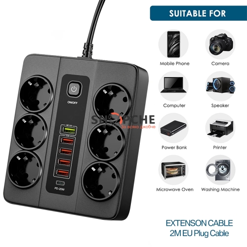 Универсален разклонител e идеален за домашна употреба, офисна среда, хотели, ресторанти и други места, където е необходимо разширяване на електрическите входове и портове. Той ви позволява да зареждате и свързвате множество устройства едновременно, като същевременно поддържа оптимална производителност и ефективност.
