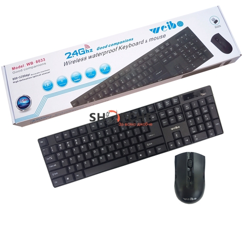 Представяме Ви 2.4Ghz Безжична водоустойчива клавиатура и мишкаWeibo WB-8033