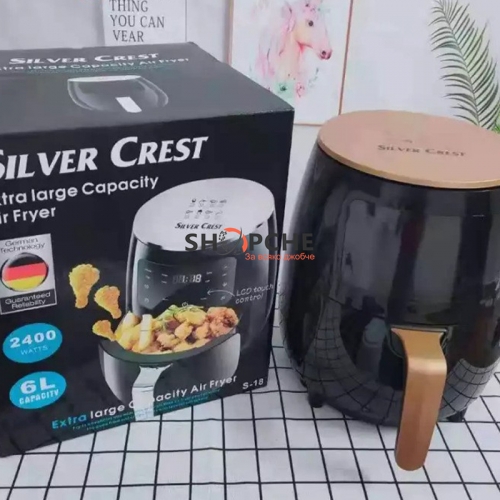 Silver Crest Gold Deluxe разполага с таймер, с възможност за настройка до 60 минути, има по-голям капацитет (6 литра) и подобрена кошница за по-добри резултати и по-лесна употреба. Цели 2400 вата мощност приготвят шеф специалитети само за няколко минути. Спестете време и енергия! Незалепващото покритие осигурява лекота на ползване и почистване.