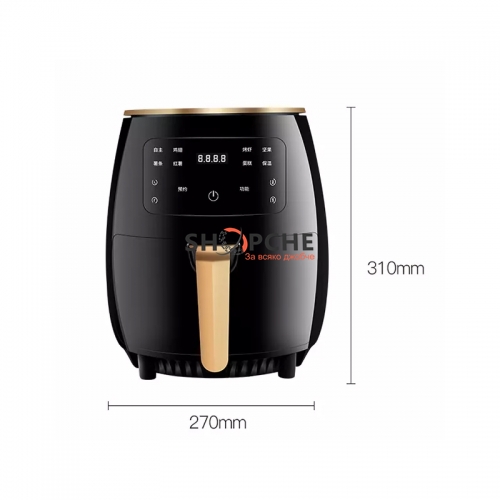Удобен и бърз, с тъч дисплей, настройка на температурата и времето за готвене и бутон за плавно разделяне на кошницата и чекмеджето, което позволява по-лесно ползване и почистване. Автоматичното изключване, придружено със звуков сигнал, предотвратява изгарянето на храната и предпазва уреда от прегряване.