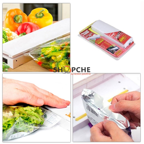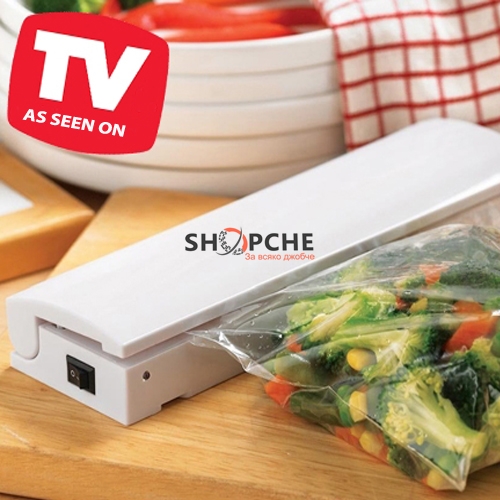 Мечтата на всяка домакиня е вече тук Reseal n save - уред за запечатване на всякакъв вид найлонови пакетчета.