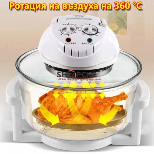 Уредът е оборудван с вентилатор, чрез който циркулацията на въздуха става по-лесно и храната се приготвя по-бързо.