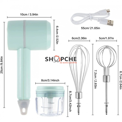 Машината е с двойно предназначение, функция 2 в 1, бъркалка за чесън и бъркалка за яйца, регулируема с 3 скорости, може да се обработва според нуждите на различни съставк.