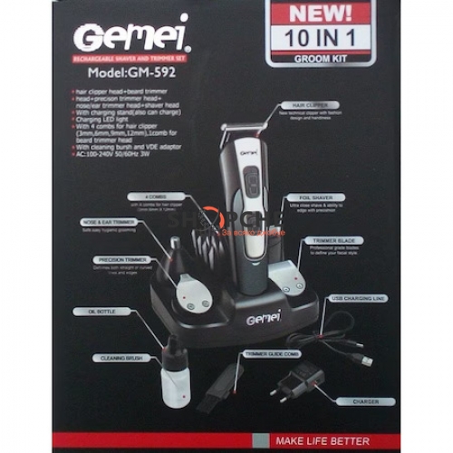 Машинка за подстригване GEMEI GM-592 10 в 1 е прекрасен подарък за съвременен мъж, който се грижи за външния си вид и обича реда и организацията във всичко.