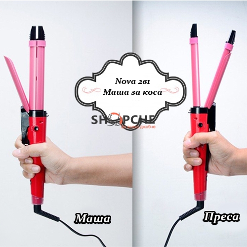 Страхотна Нанокерамична преса и маша за коса с уникален дизайн, благодарение на който можете да използвате продукта като преса за изправяне и маша за навиван!