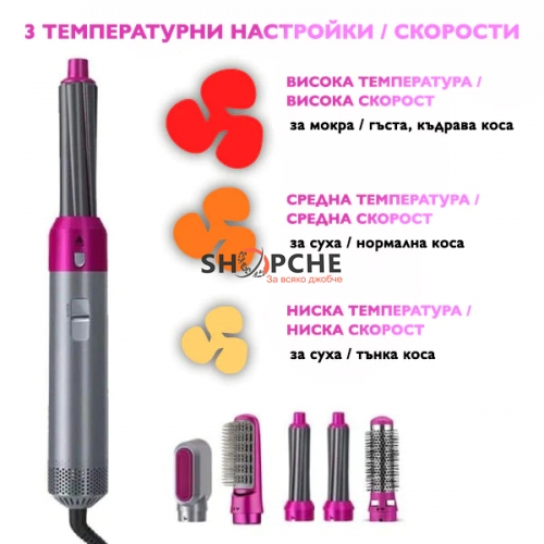 - Многофункционален уред за сушене, изправяне, къдрене, придаване на обем и оформяне на косата