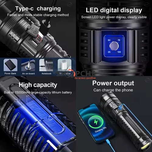 Открийте върховната мощност на осветление с акумулаторния фенер BX-SP37 – идеалният избор за къмпинг, туризъм, лов, риболов, колоездене, спешни случаи и ежедневна употреба.