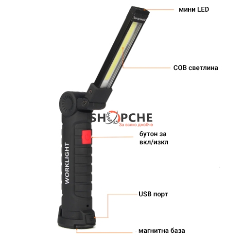 Презаредима Работна Лампа И Фенер с USB WORKLIGHT