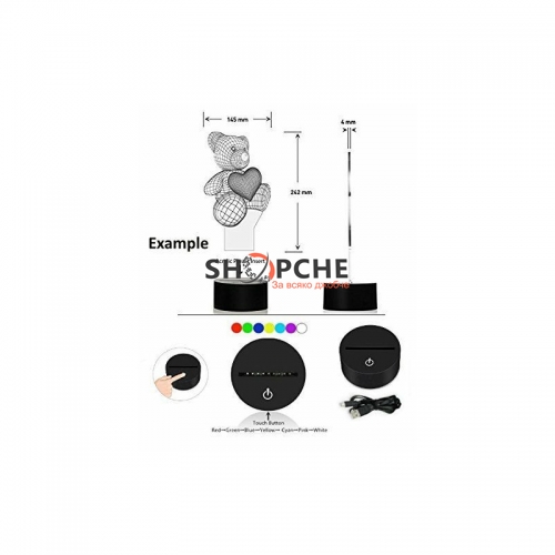 Уникална 3D LED нощна лампа, с подсветка . Насладете се на 3D ефекта, който ще създаде допълнителен уют в дома ви. Благодарение на палитрата от цветове лесно може да се съчетае с вашият интериор. Идеална за подарък на любим човек или приятел.