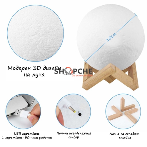 Акумулаторната лампа със стойка тип луна е изключително красива и функционален аксесоар, който ще краси дома или офиса Ви!