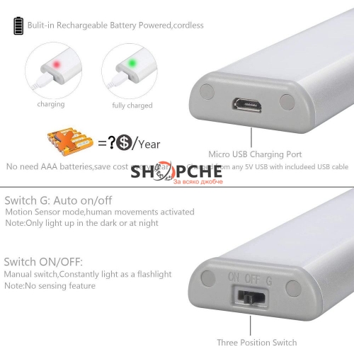 Безжична акумулаторна LED лампа с датчик за движение