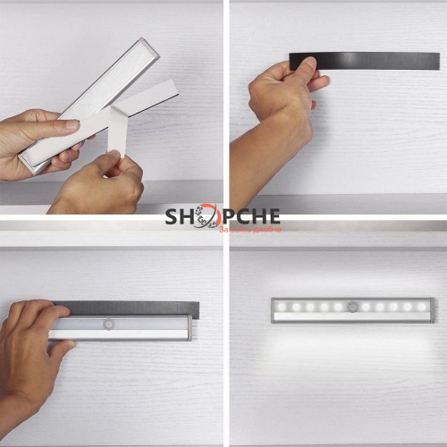 Лесен монтаж: Без нужда от пробиване или сложни инсталации - нашата лампа може да бъде поставена със самозалепваща се лента или магнитна лента, която идва в комплекта.