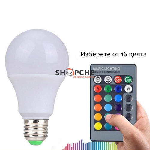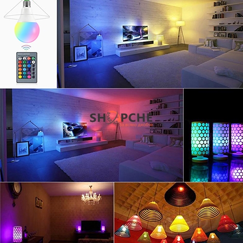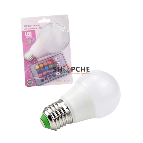 LED лампа с дистанционно управление и сменящи се цветове AC85-265V