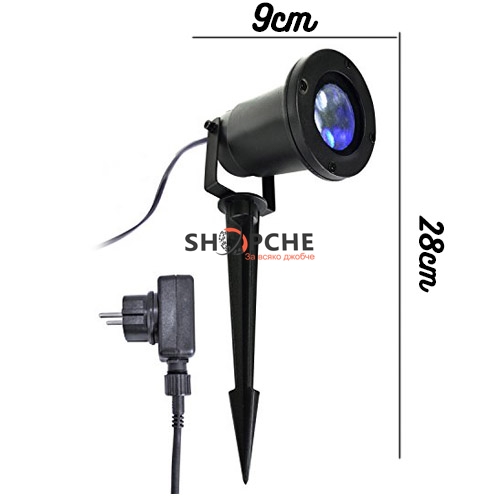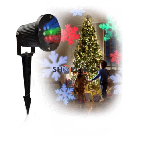 Светодиодният проектор прави стената на къщата, градината, дърветата и много по-декоративен блясък със снежинка.